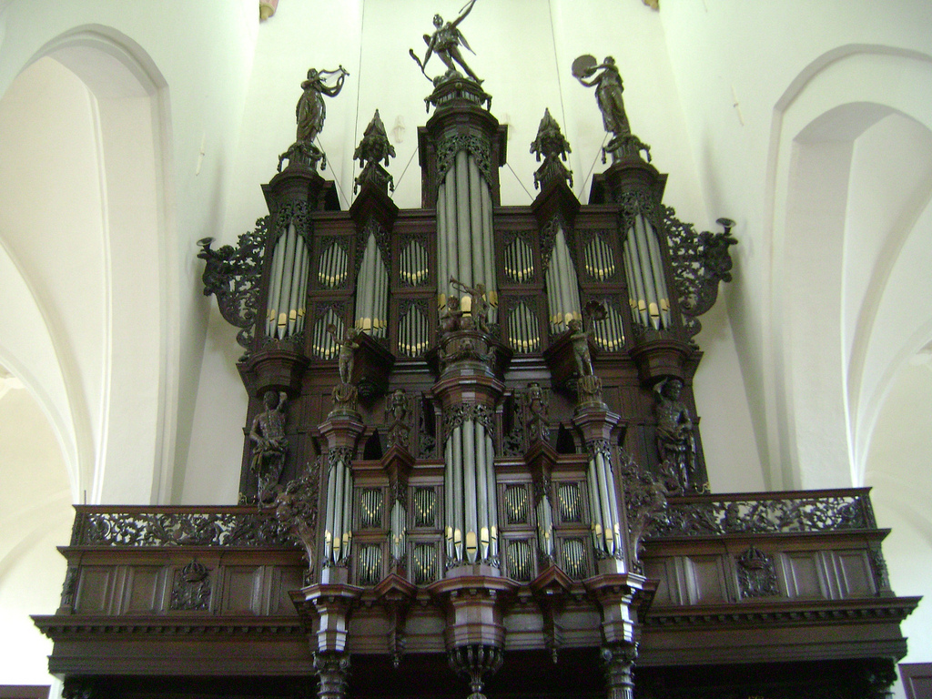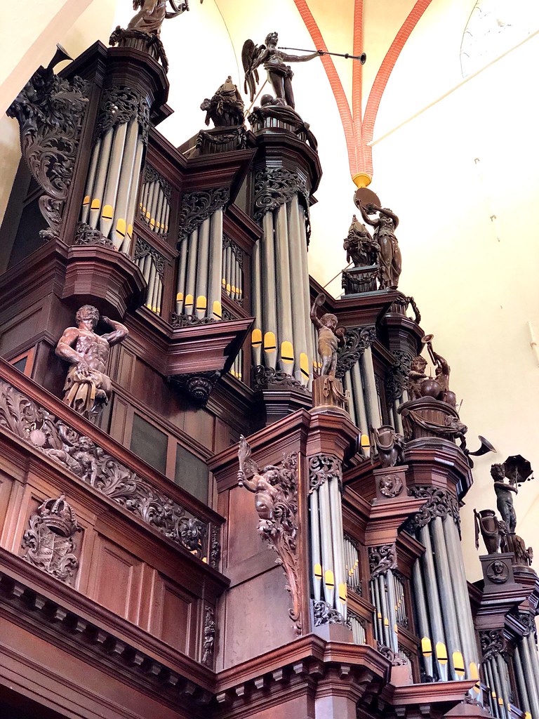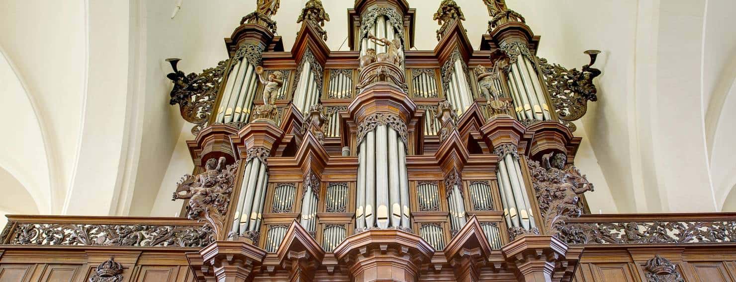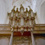 The first organ in the Aa-Kerk was built around 1450 and later rebuilt in 1558 by Andreas de Mare I. A century later, in 1654, Faber was commissioned to build a new large organ which he could not achieve before his death in 1659. Jacobus Hagerbeer completed it in 1667, resulting in a three manual and pedal great organ with 40 stops, which fell victim of a fire in 1671. Arp Schnitger built a new organ for the church between 1694 and 1697, which was Schnitger’s largest organ in the Netherlands, with four manuals, pedalboard and over 40 stops. It was lavishly praised and Schnitger himself uttered about it: “I did not spare anything and made everything wonderful; I provided, beyond the contract, 6 stops on a special windchest, and this organ still deserves a little more“. Fate seized this organ through in 1710 when it was destroyed by the collapse of the tower. Henceforth, for over a hundred years the church did without organ.