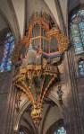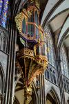 Located in swallow-nest, north to the second transept in Notre Dame Cathedral, Strasbourg, Alsace, France. Its current disposition is three manuals and pedalboard with a total of 47 stops, in original Gothic case declared historical monument in 1975.
