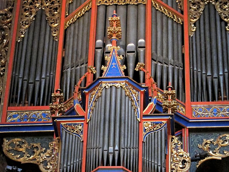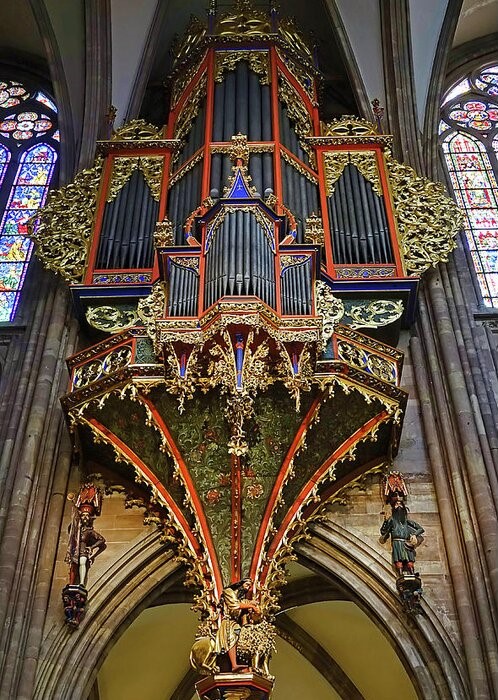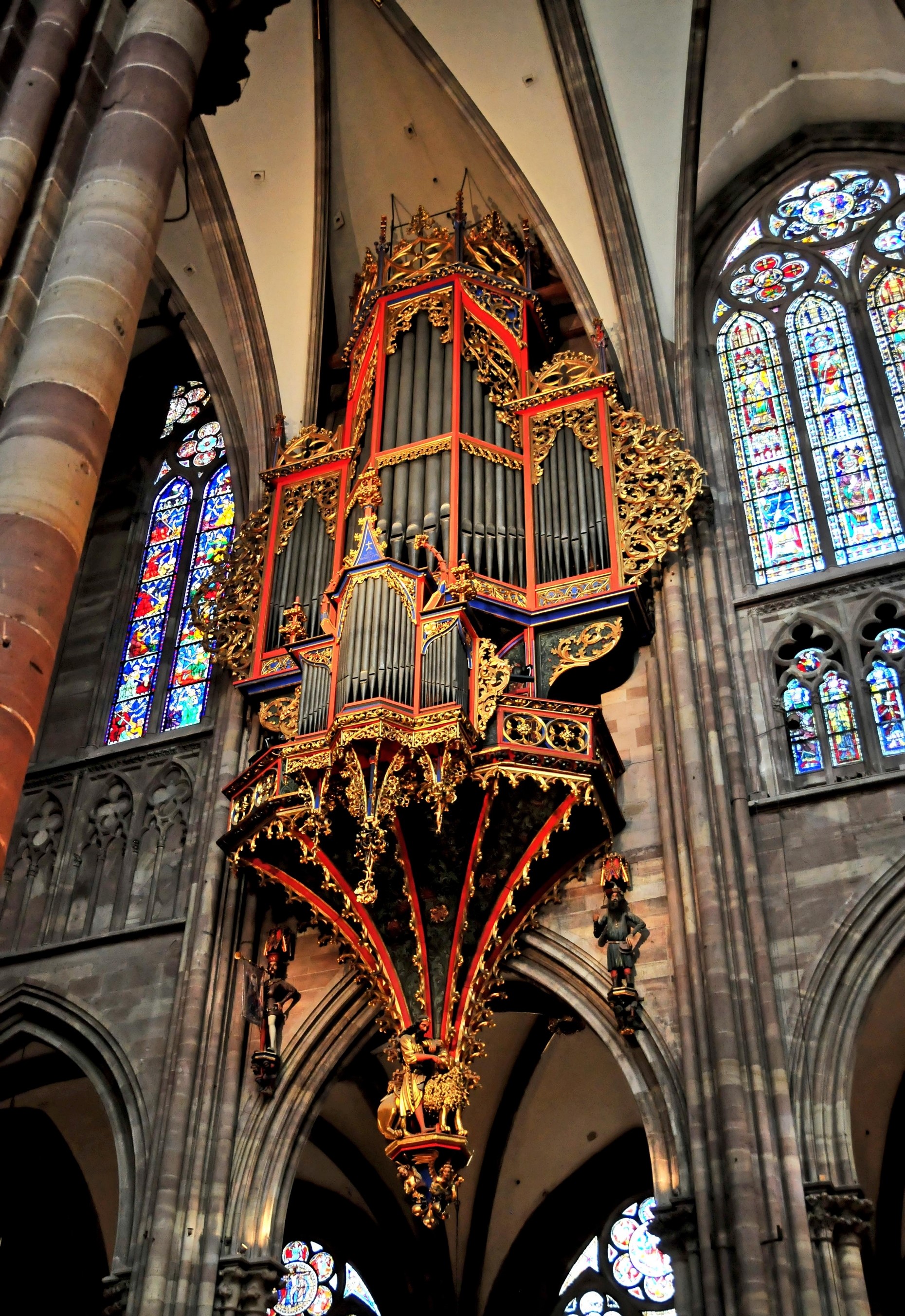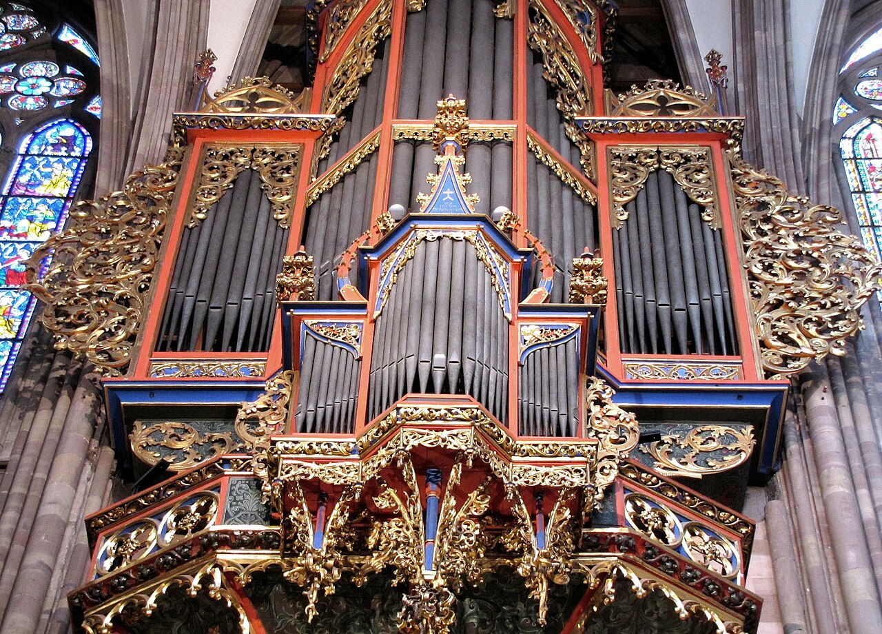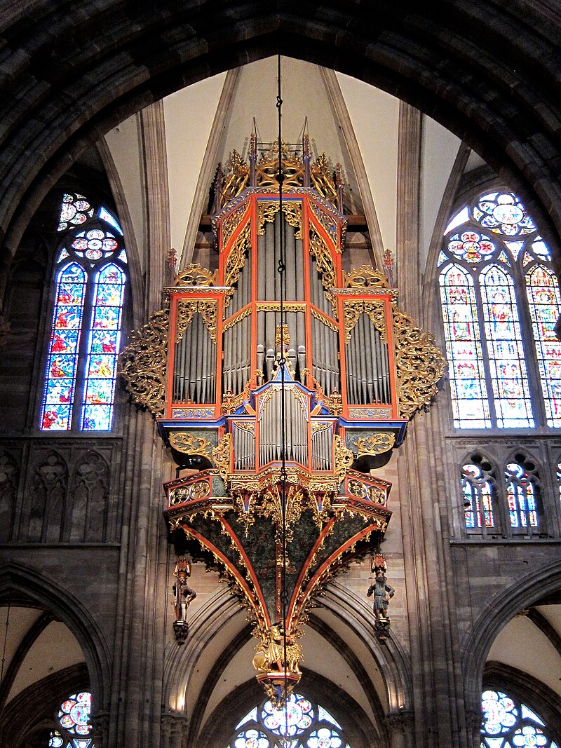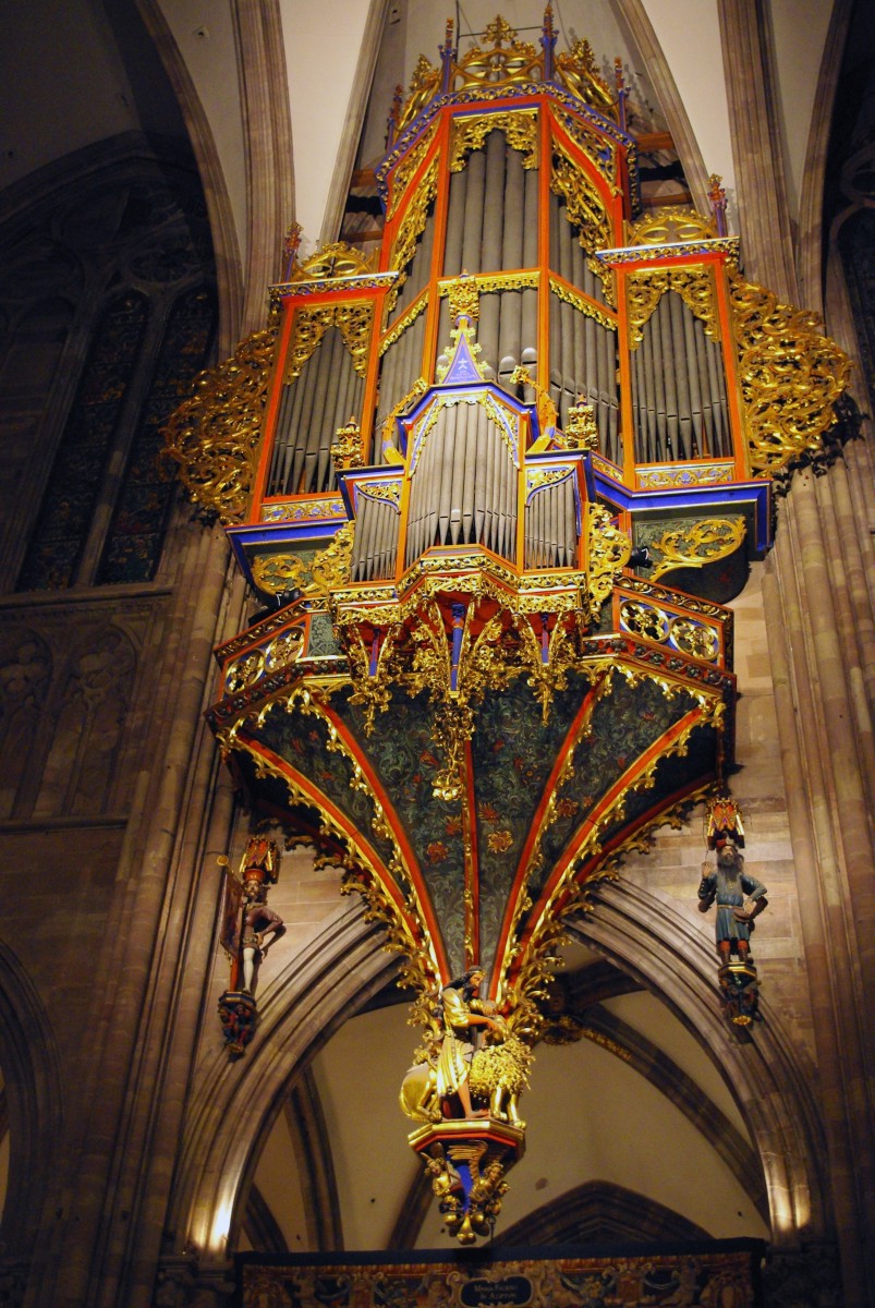 Located in swallow-nest, north to the second transept in Notre Dame Cathedral, Strasbourg, Alsace, France. Its current disposition is three manuals and pedalboard with a total of 47 stops, in original Gothic case declared historical monument in 1975.